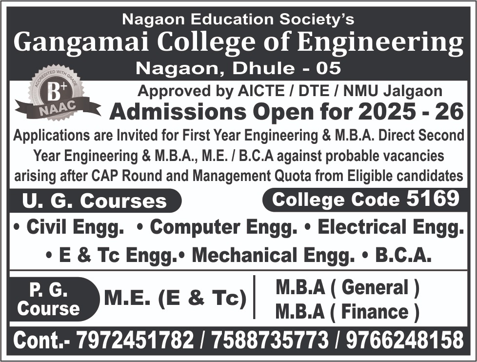 The institute was established in the year 1991 at Nagaon in Dhule district of Khandesh region of Maharashtra state. This institution is imparting the best quality education to the society as it has been done by Nagaon Education Society,