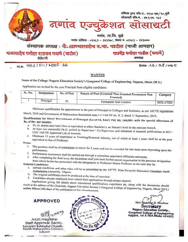 Approved by AICTE - New Delhi, DTE - Mumbai, Affiliated to North Maharashtra University, Jalgaon